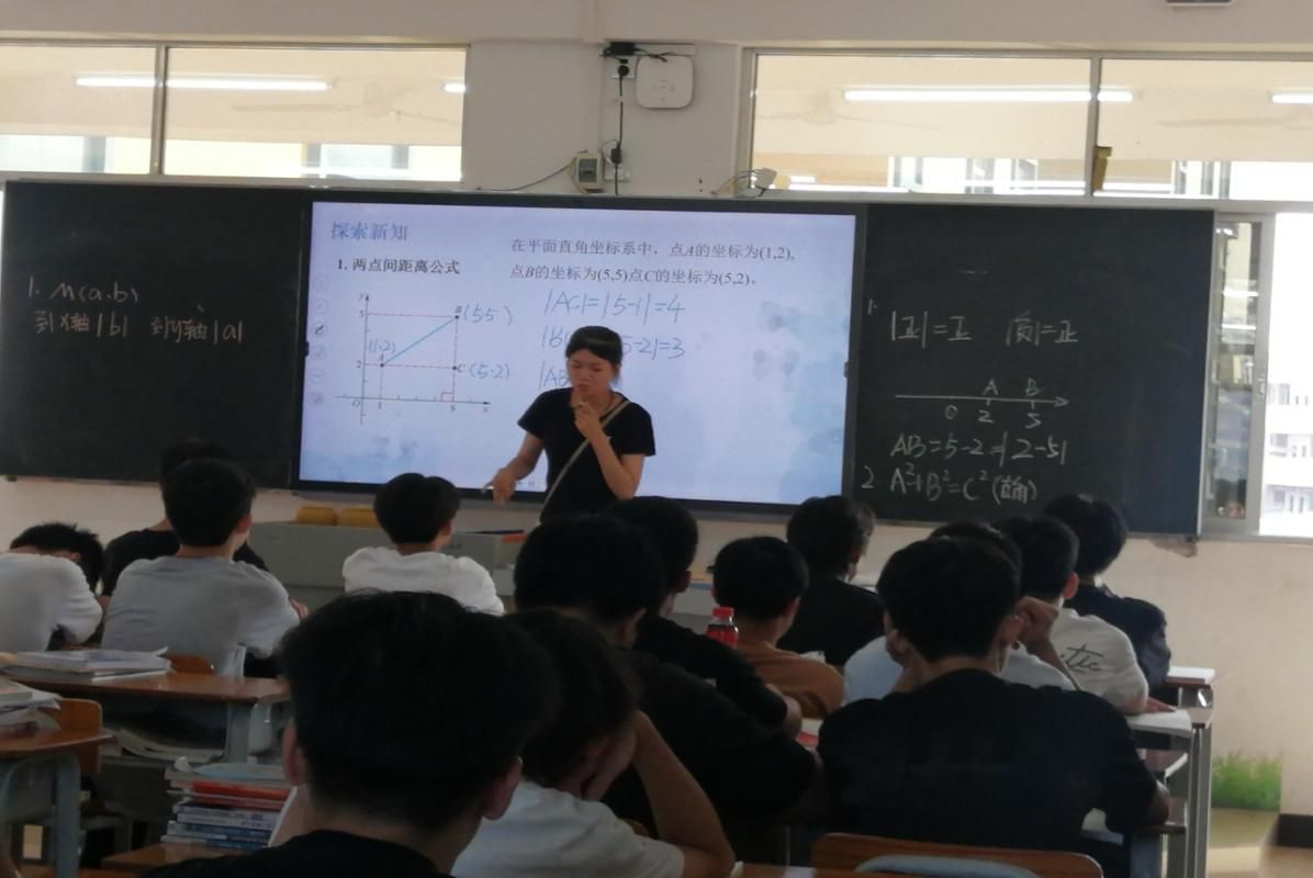 本次公开课由苏唯珊老师主讲,授课的内容是《两点间距离公式和线段的中点坐标公式》。苏唯珊老师运用了启发式教学、探究式教学等多种教学方法,将抽象的数学知识转化为直观、易懂的内容;用丰富的案例和练习将点到坐标轴的距离到两点间距离公式的知识讲透、讲明白。