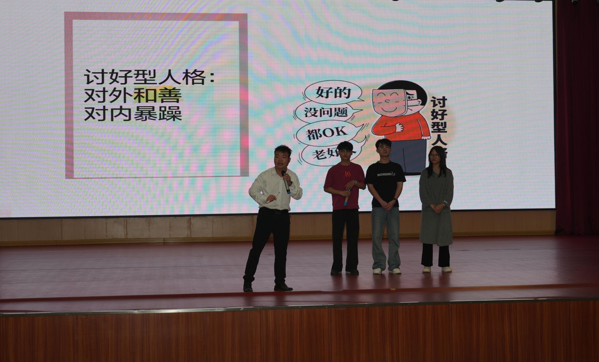 李嘉俊医生以“考试焦虑调适与积极人际沟通”为主题,通过情景分析、互动体验等方式,引导学生掌握情绪管理、压力转化的实用策略。在轻松活泼的氛围中,同学们逐渐打开心扉,学会与焦虑“和平共处”。