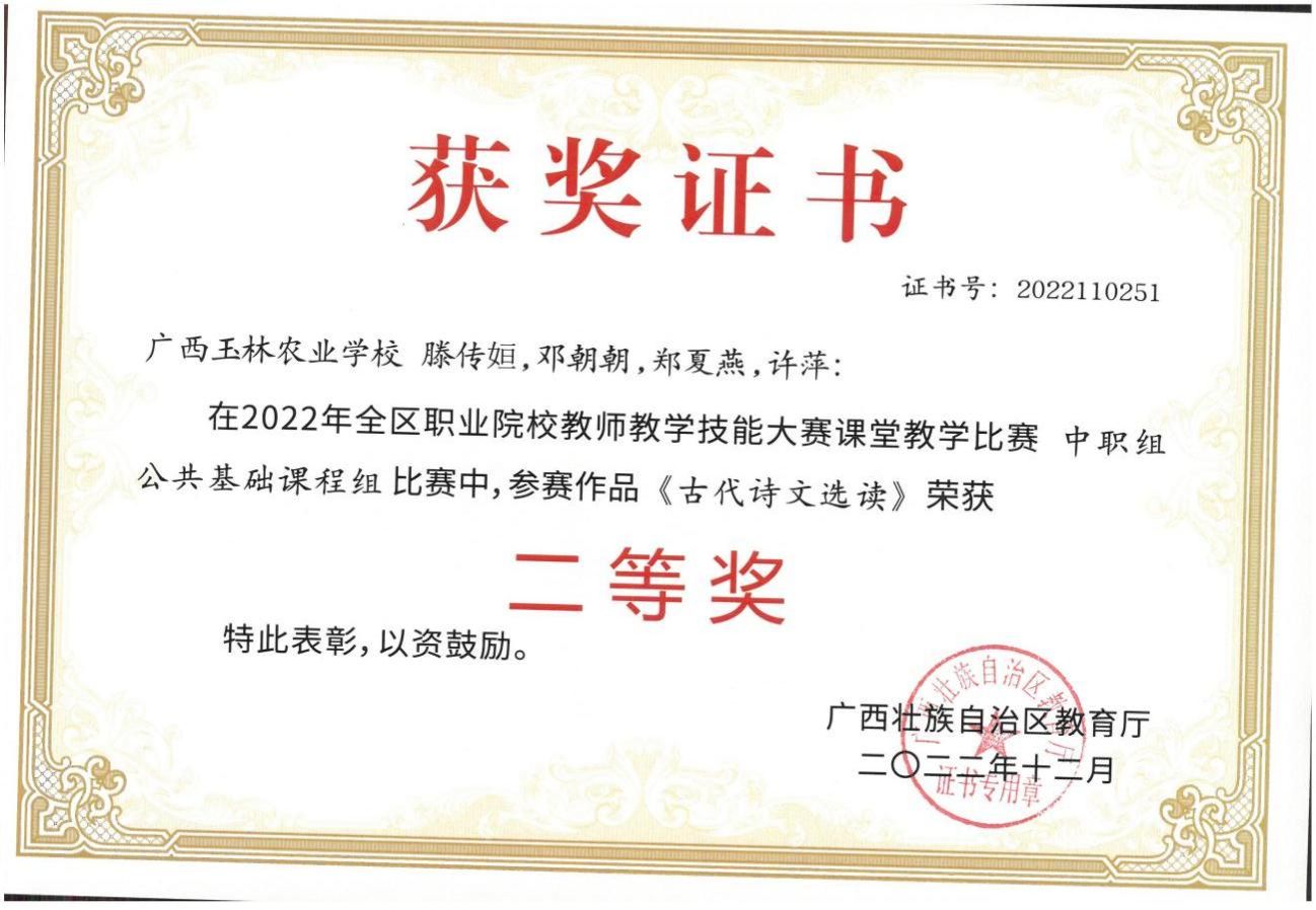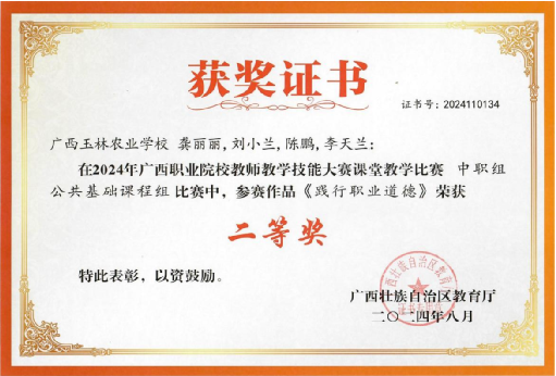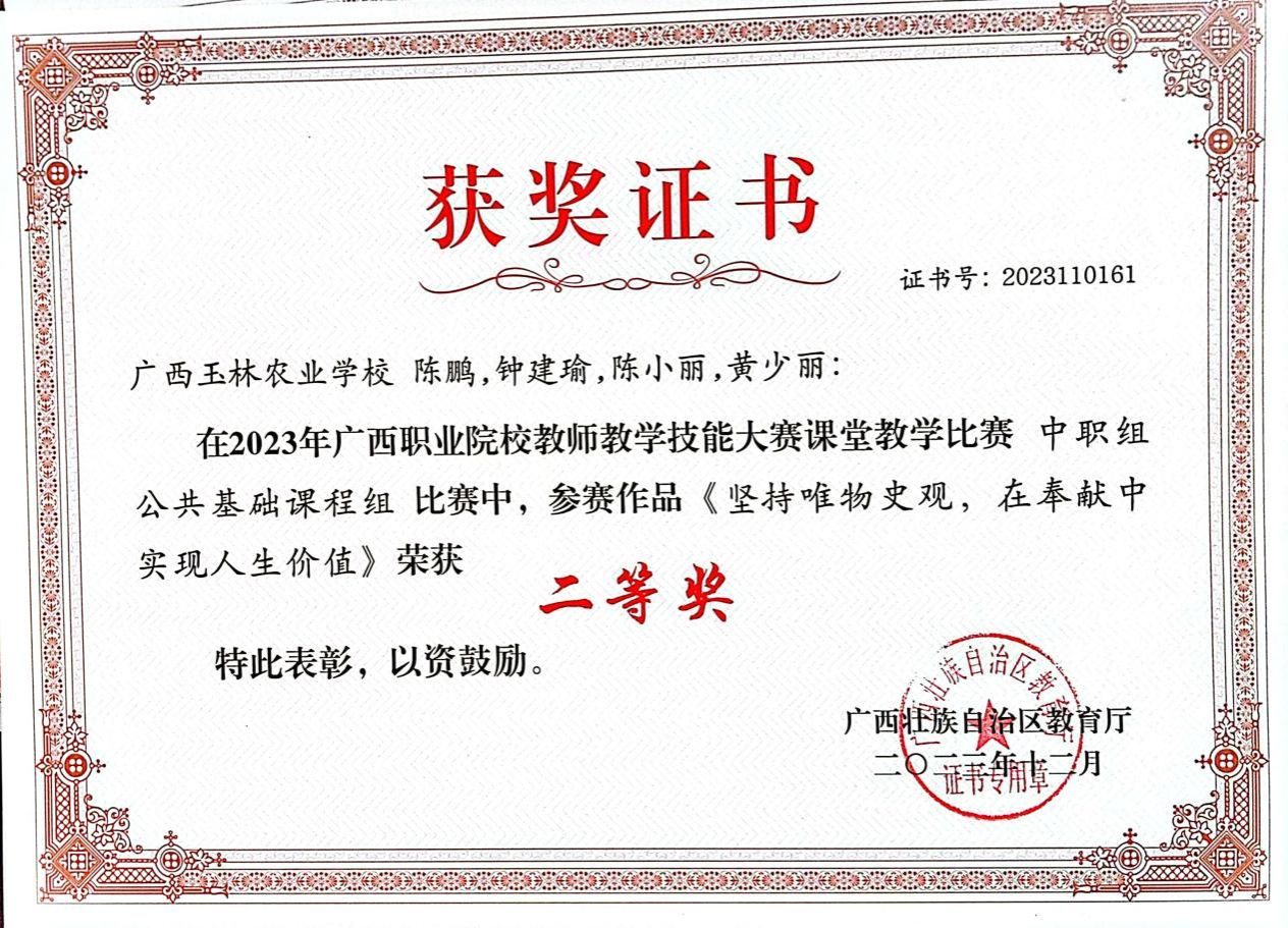 陈鹏、钟建瑜、陈小丽、黄少丽参加2023年全区教学比赛自治区级二等奖