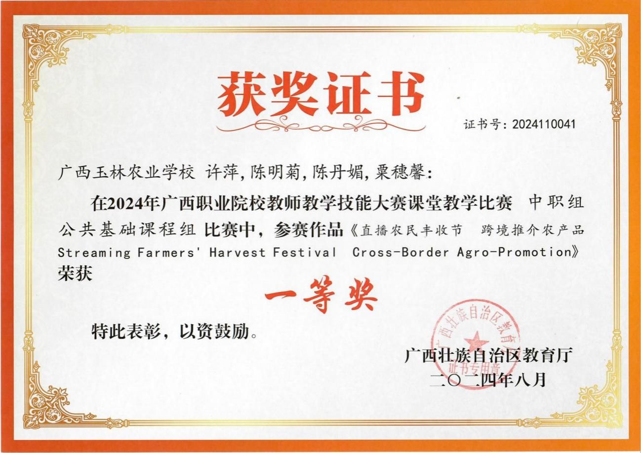 许萍、陈明菊、陈丹媚、粟穗馨参加2024年全区教学比赛自治区级一等奖