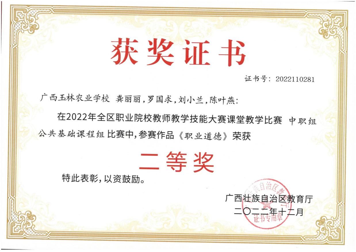 龚丽丽、罗国求、刘小兰、陈叶燕参加2022年全区教学比赛自治区级二等奖